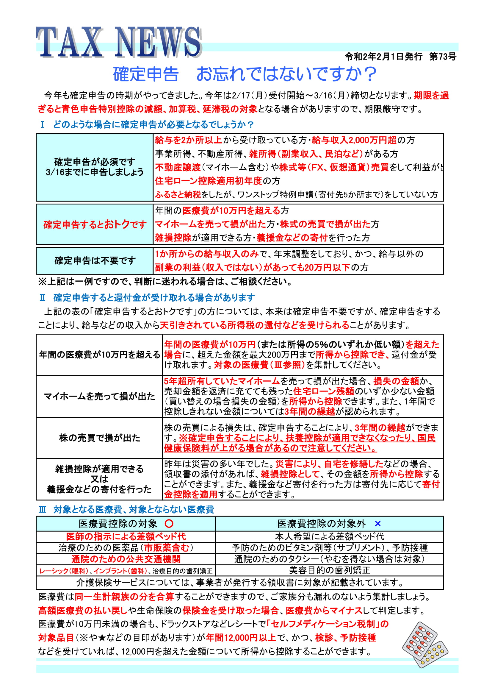 TAX NEWS ~確定申告について~ (令和2年2月1日発行)