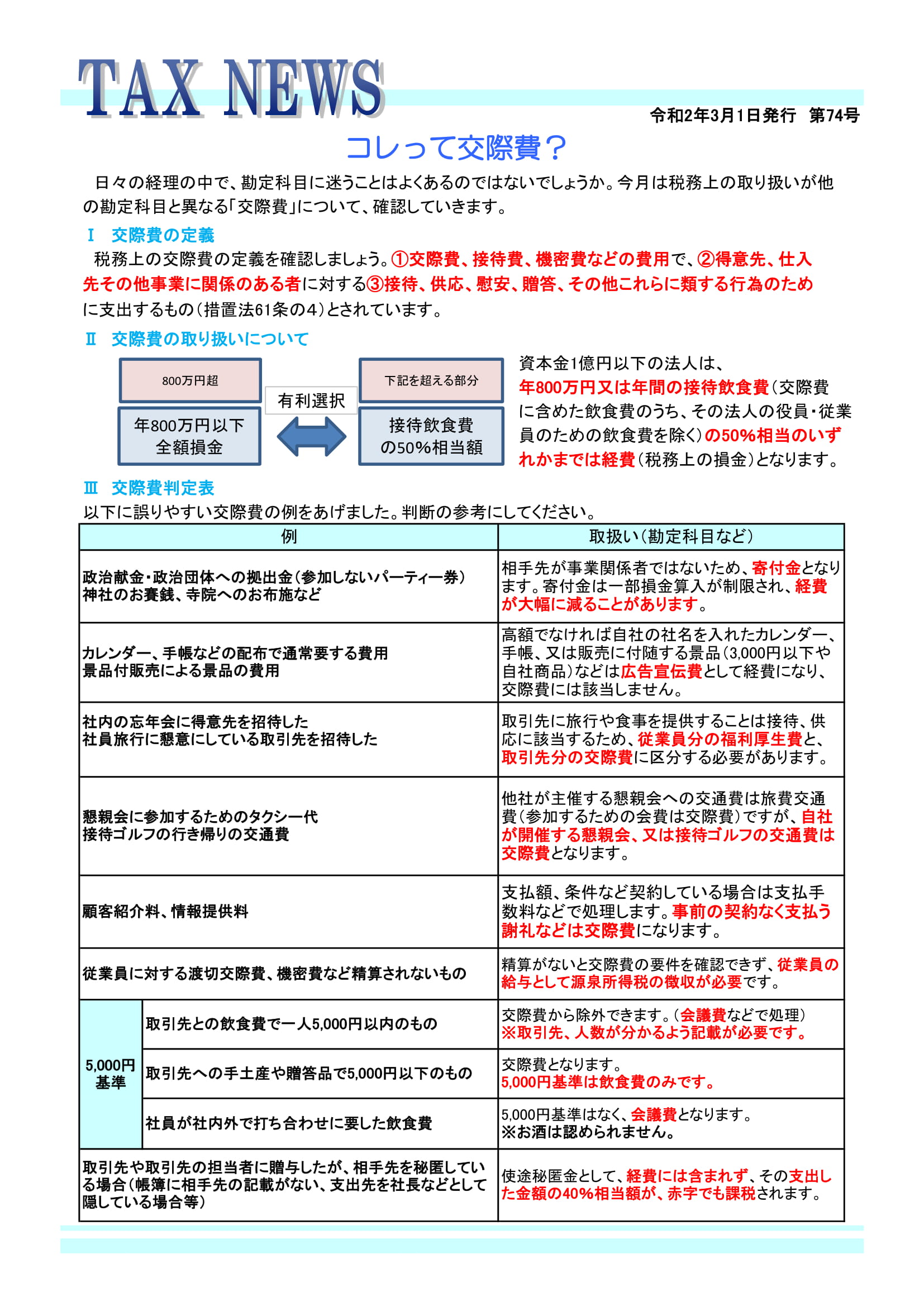 TAX NEWS ~コレって交際費?~ (令和2年3月1日発行)